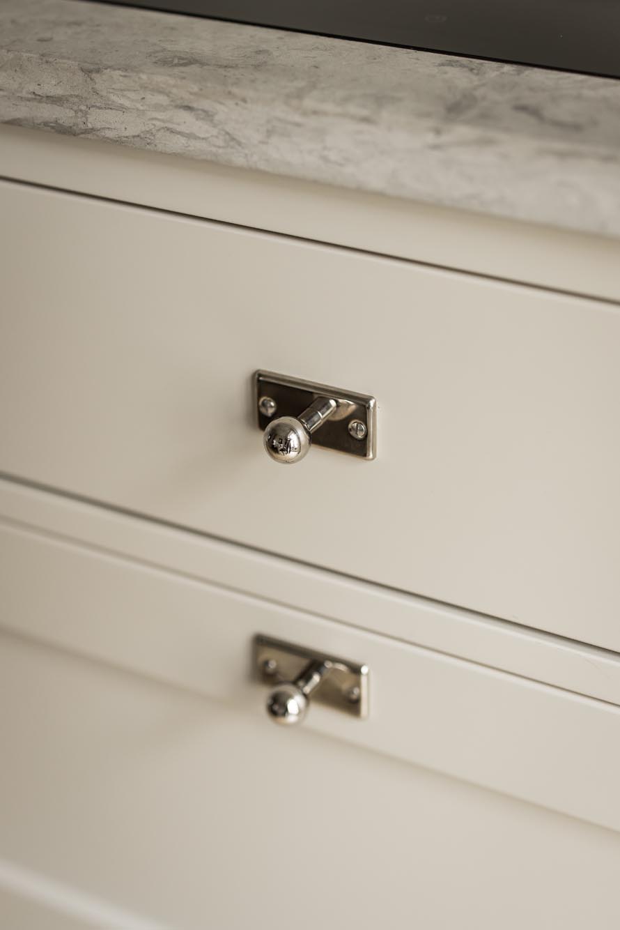 We chose a modern interpretation of the Shaker style for this kitchen, with stylish framed doors. The doors have a frame measuring 55 mm in width and are made from CNC-cut MDF to ensure precision and durability. The classic framed doors are complemented by a symmetrical design, where each drawer and cabinet harmonizes to create a calm and balanced aesthetic.