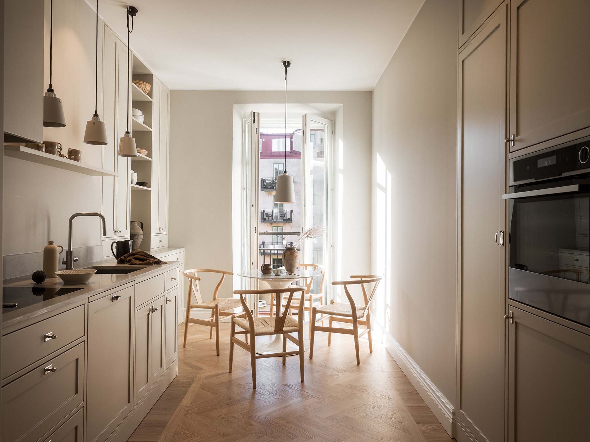 The sixteenth century apartment has everything you dream of with generous ceiling height, beautiful parquet floors and the family had already decorated tastefully and in keeping with the times so we went in and continued in the same spirit with the kitchen. Shaker style kitchen fits nicely in the style and in order not to make the kitchen heavy, it has been given light and fresh colors. We have followed the classic style but without compromising on the latest technology in appliances and other modern options.