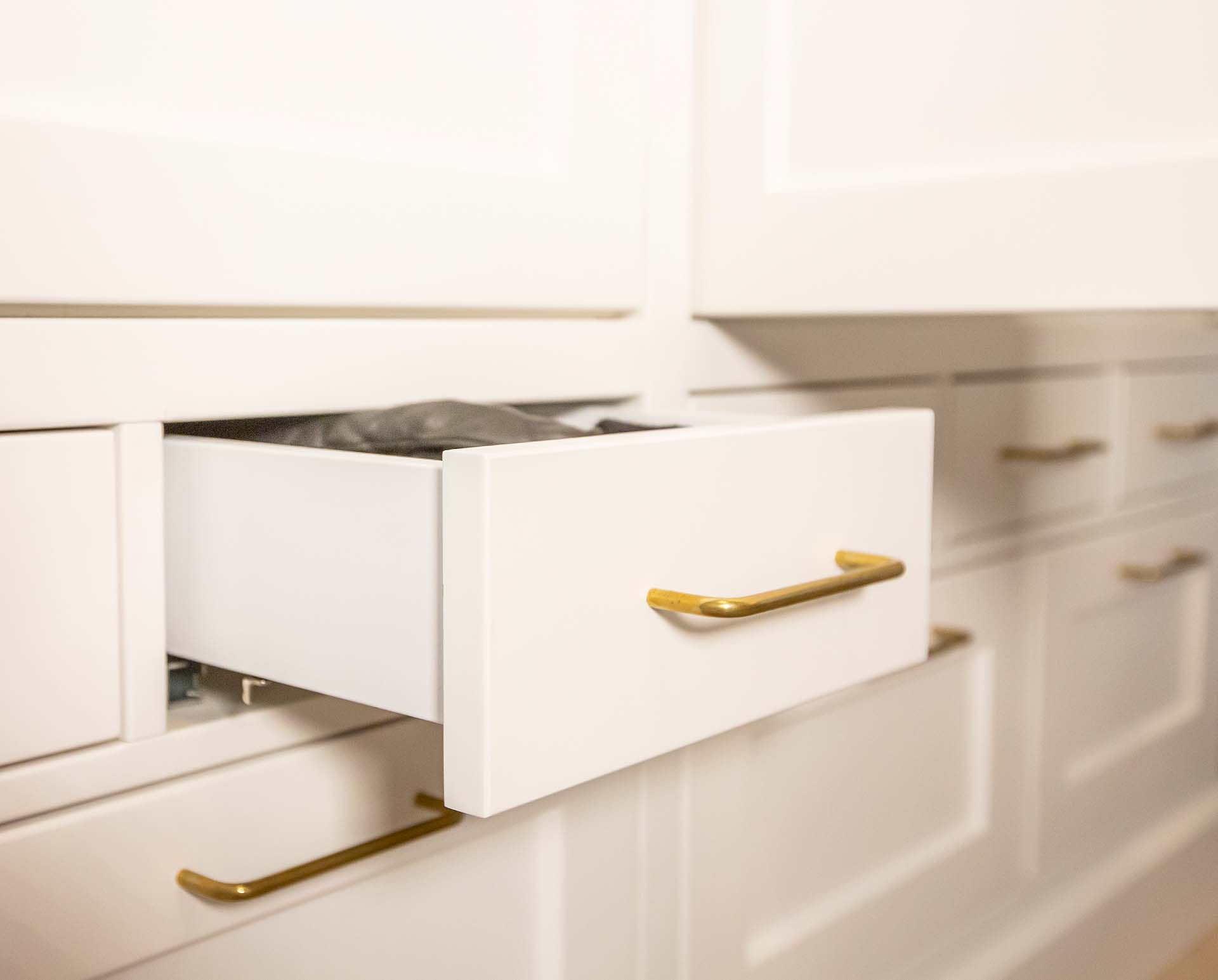 We produce your walk-in closet in our own carpentry shop and carry out the installation in your home.