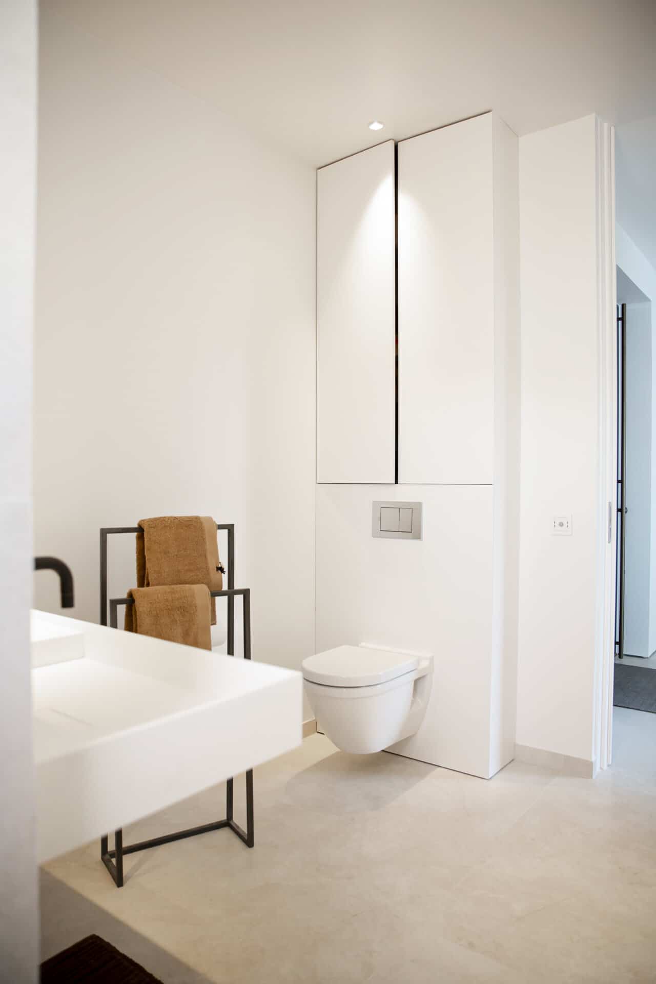 badrum badrumsskåp inbyggndastoalett integrerad förvaring lyx platsbyggt duravit gerberit supermodular casa dolce casa NCS S0500-N