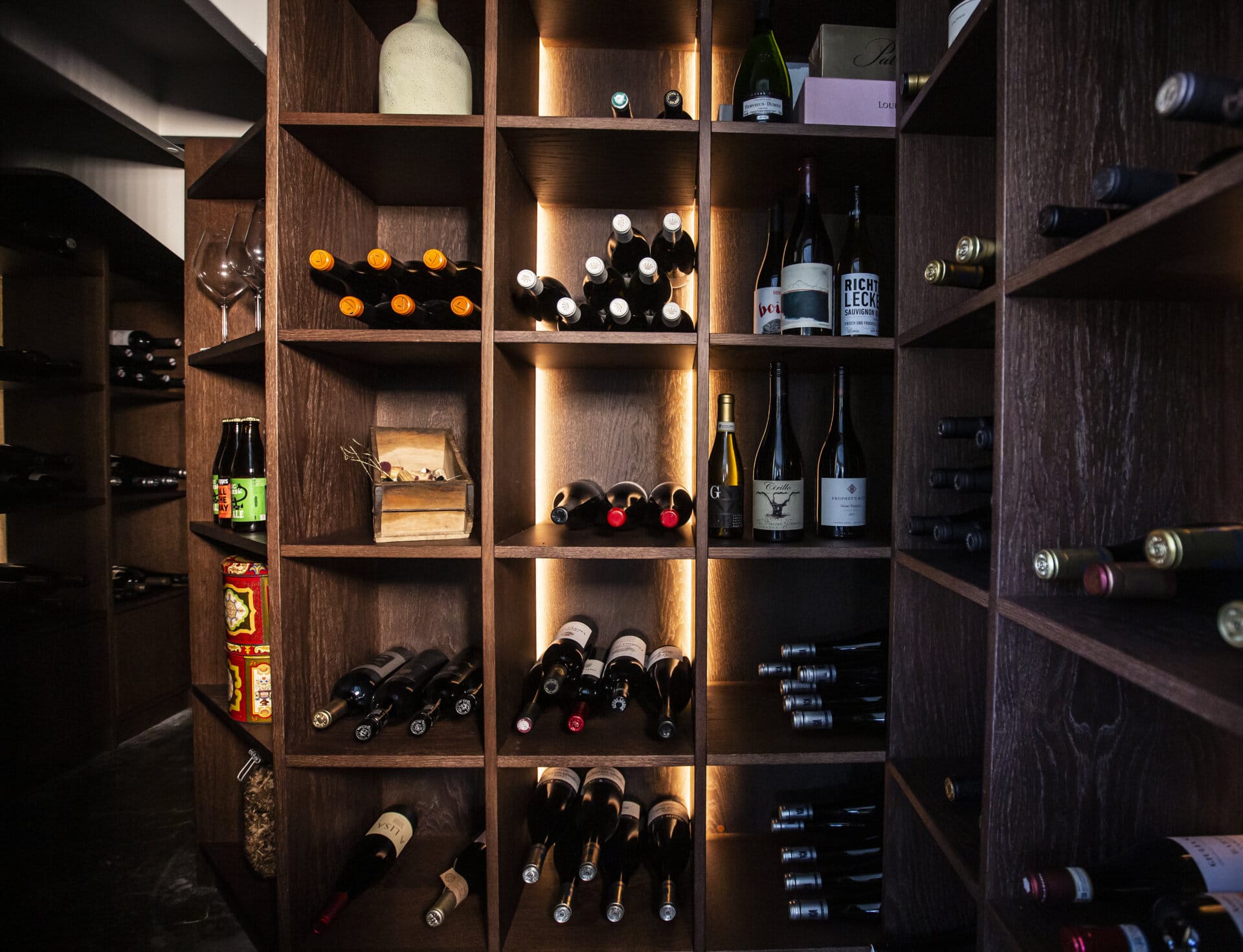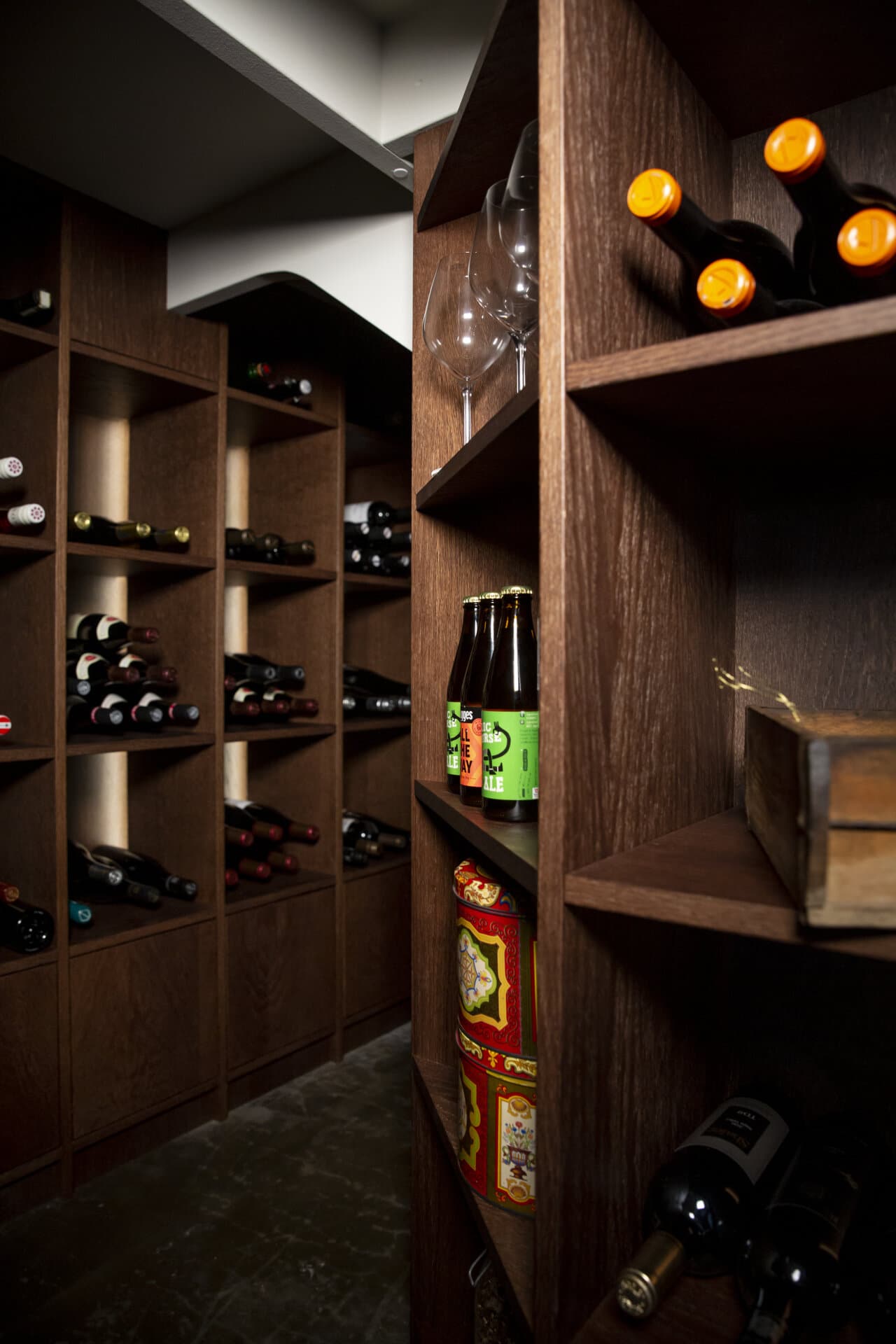 One of the key features of this wine room is the integrated temperature control, which ensures that the wine is kept in the perfect climate for long-term storage. The wine storage is designed to maximize both space and efficiency, while offering a stylish and exclusive atmosphere.