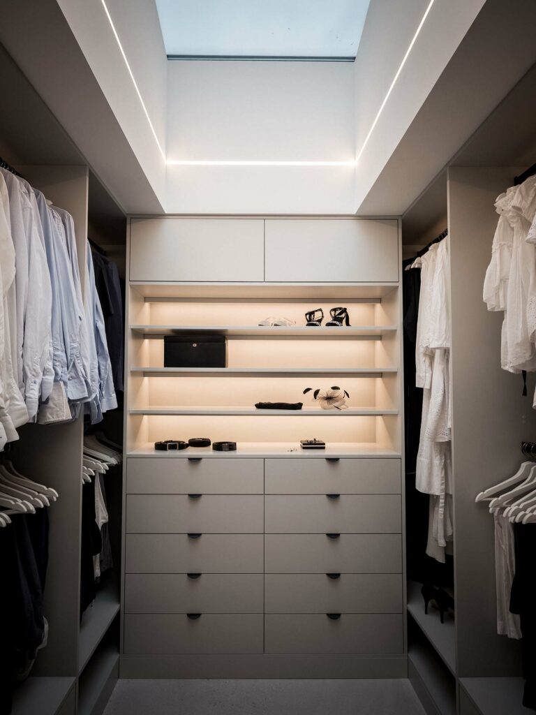 Here the wish was clear from the customer where they wanted most of their clothes on clothes hangers. The advantage of hanging pants, sweaters and t-shirts is that it becomes more manageable while avoiding the mess in the drawer when lifting out the garment that is in the middle of a pile.