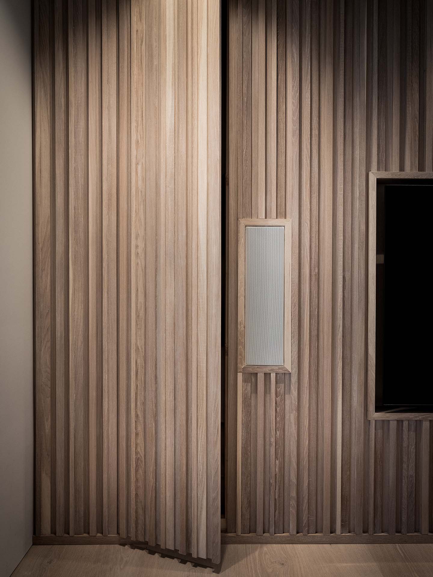 Many people dream of their own home theater, but few have the opportunity to have it and it easily becomes a room that is difficult to achieve. So why not create a room that you don’t want to leave and where the whole feeling is lifted by the incredibly stylish and exclusive feel of this room. In this room, we have home theater rooms with oak wood slats.